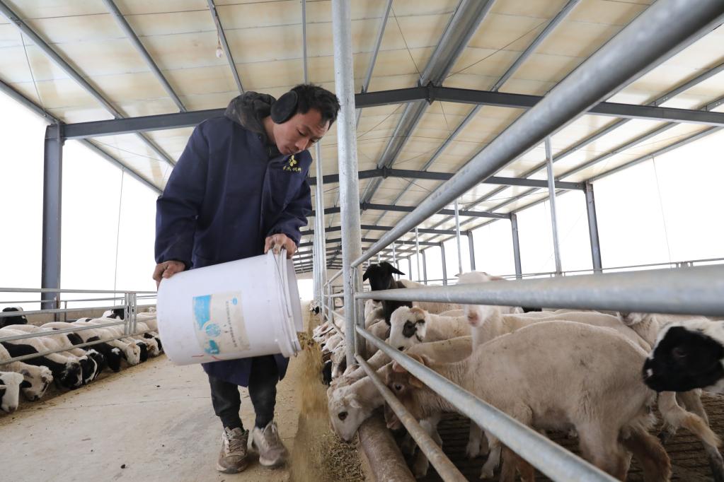 在河北省邯鄲市邱縣前小河套村村東頭,“羊倌”王文勝管理的3000多只羊7點(diǎn)鐘就吃上了“豐盛早餐”。