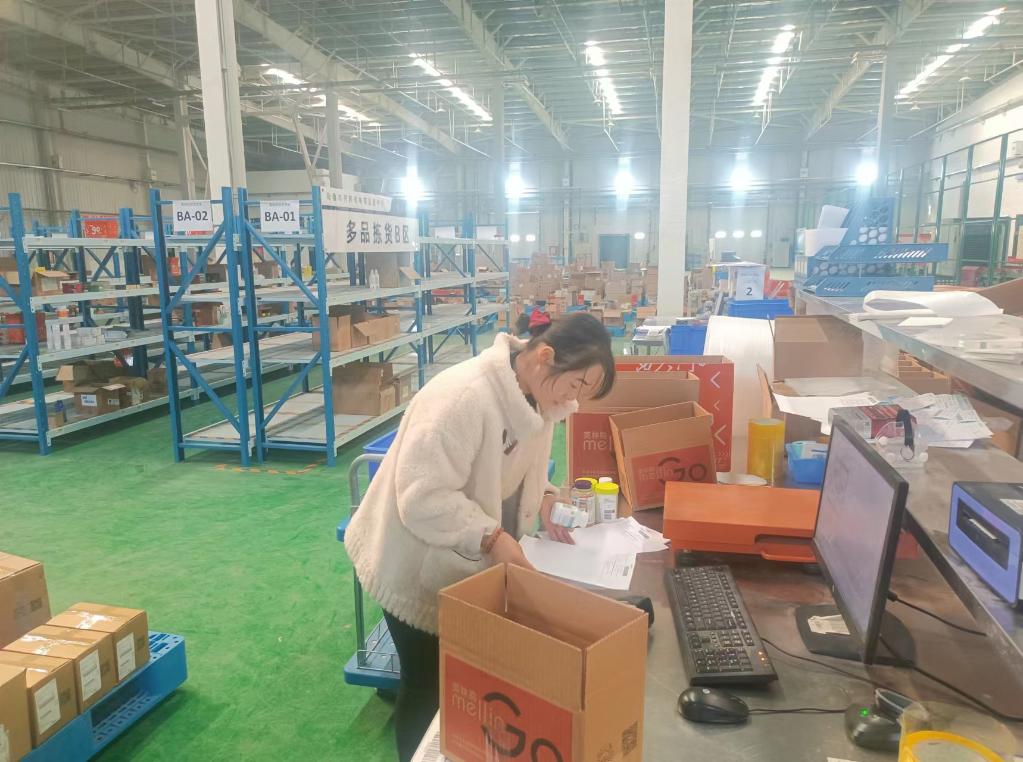 2月22日,烏魯木齊綜合保稅區跨境電商監管中心,工作人員正在忙碌。新華社記者潘瑩 攝