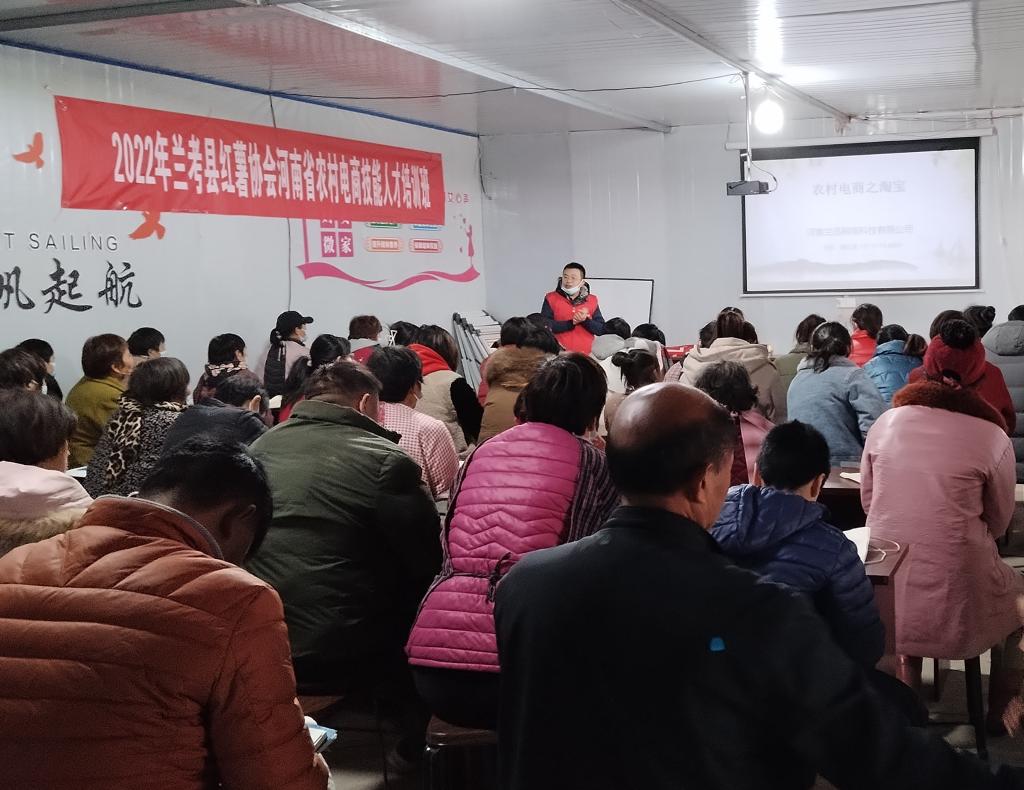 2022年11月26日,蘭考縣“一懂兩愛(ài)”科技服務(wù)團的電商專(zhuān)家在蘭考紅薯科普示范基地舉辦農村電商技能人才培訓班。(蘭考縣科協(xié)供圖)