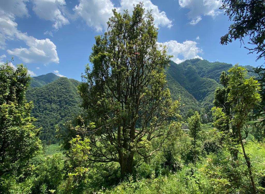 這是位于巫溪縣蒲蓮鎮雙鹿村的一棵千年老鷹茶樹(shù)。新華社記者萬(wàn)志云 攝