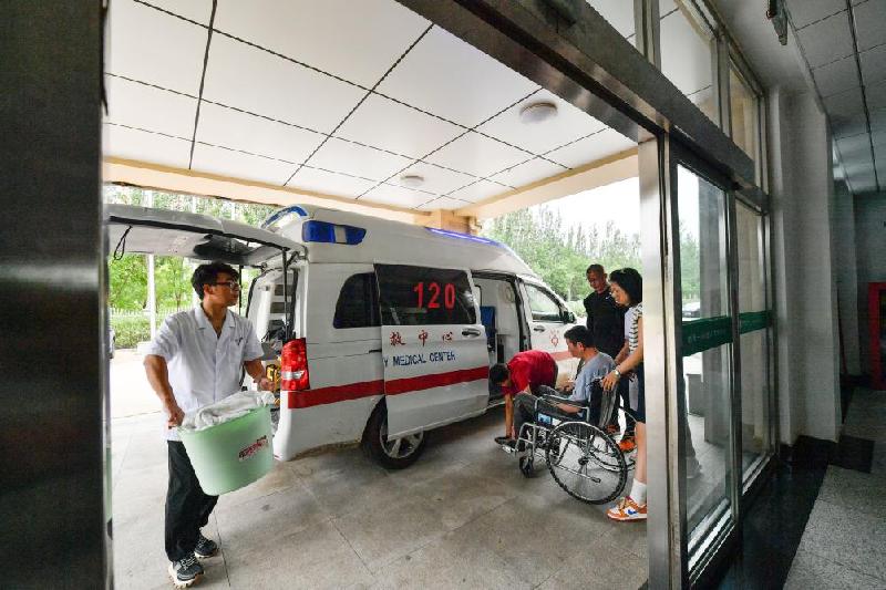 8月3日,在天津市靜海區海福祥養老護理院,工作人員協(xié)助家屬將不便轉移至臨時(shí)安置點(diǎn)的群眾送至養老護理院。