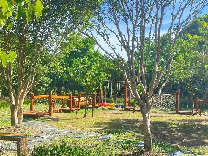 上海市金山區張堰鎮百家村開(kāi)放休閑林地內的兒童游樂(lè )區。(譚索立 攝)