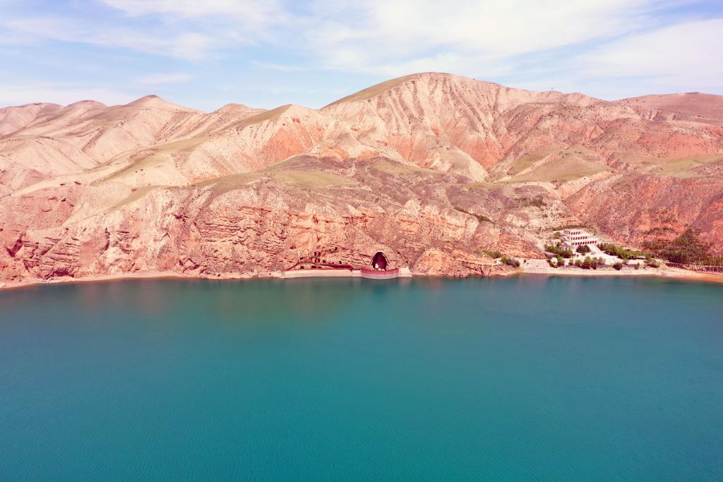 這是位于黃羊河水庫之濱的“石窟鼻祖”——甘肅省武威市天梯山石窟(2023年6月14日攝,無(wú)人機照片)。新華社記者 郭剛 攝