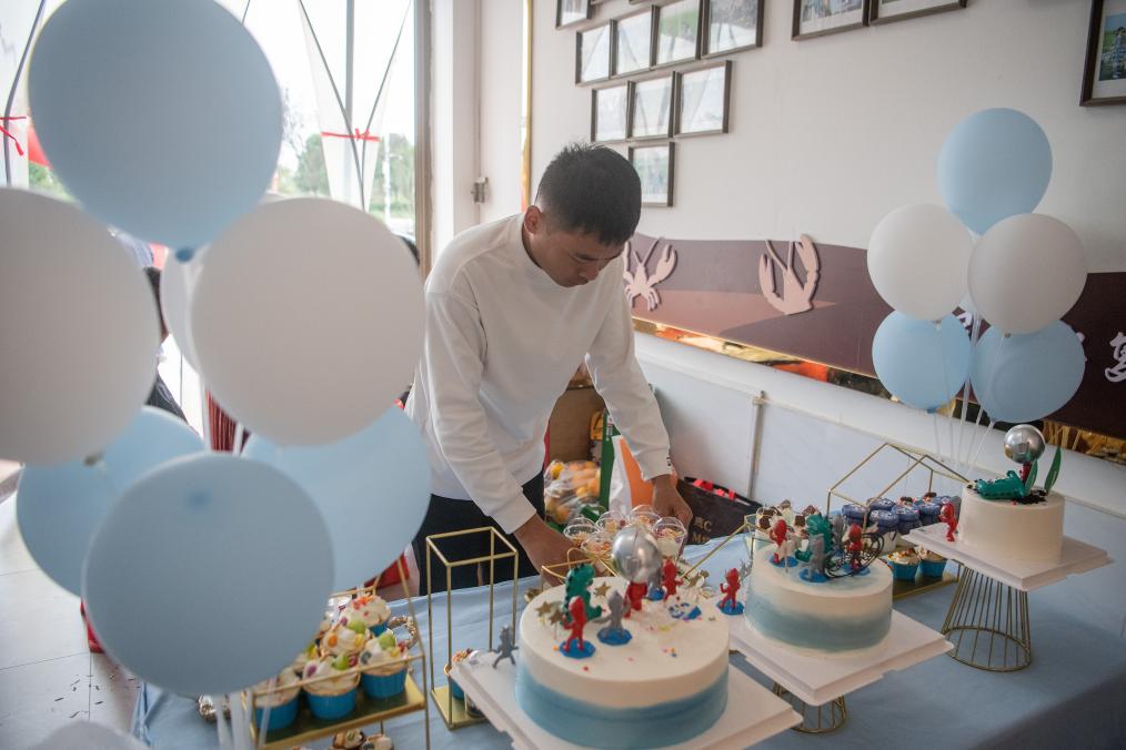 10月4日,陳曉波在馬拉松民宿布置餐桌。新華社記者伍志尊 攝