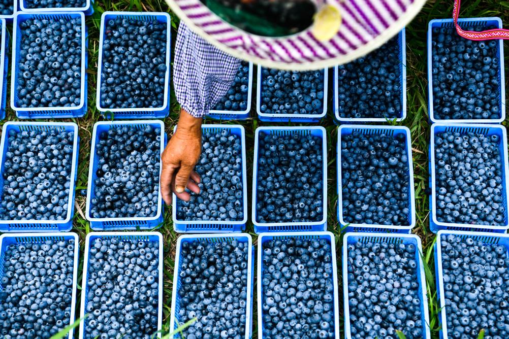 藍莓成熟之后呈現發(fā)亮的紫藍色,一把熟透的帶“霜”藍莓放入口中,“爆”出的幸福感立馬在口腔蔓延。目前全球有50多個(gè)國家生產(chǎn)藍莓,我國的栽培面積位列第一。在我國,貴州的藍莓栽培面積最大,目前已超20萬(wàn)畝。