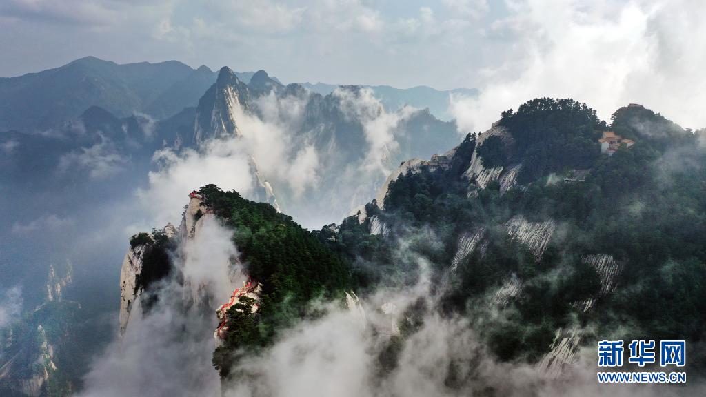 8月14日,奇景幻影的西岳華山風(fēng)光(無(wú)人機照片)。