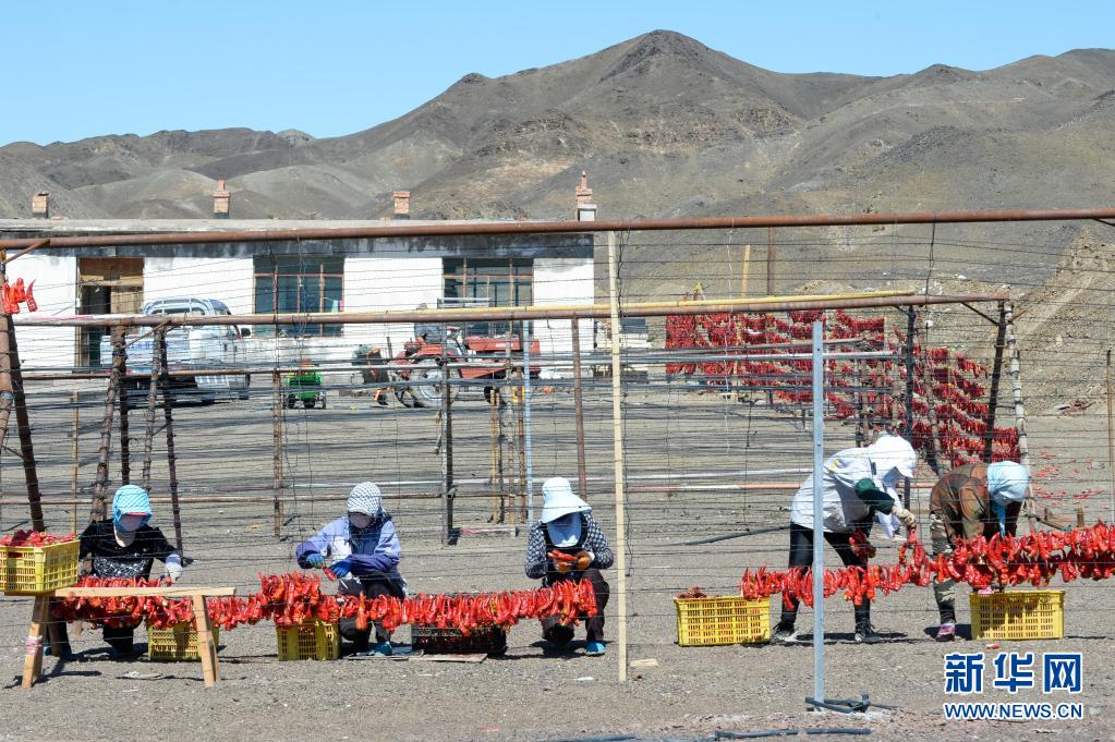 近日,新疆巴里坤哈薩克自治縣三塘湖鎮迎來(lái)辣椒豐收季,村民們搶抓晴好天氣采摘、晾曬辣椒。