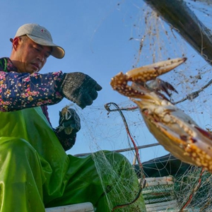 “風(fēng)浪越大,海水越渾濁,漁網(wǎng)越不容易被螃蟹發(fā)現?!焙鷩抡f(shuō),為了有好的收獲,漁民往往選擇逆著(zhù)風(fēng)浪半夜去深海作業(yè)。