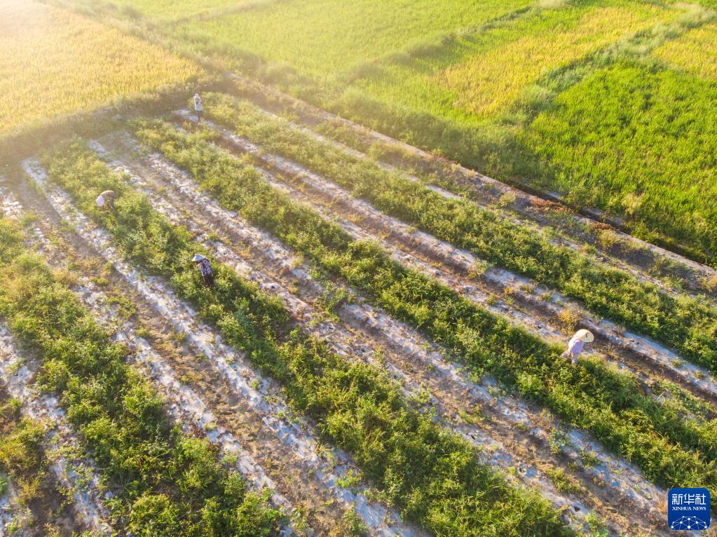8月30日,農戶(hù)在濂溪大洞蔬菜基地內忙碌(無(wú)人機照片)。