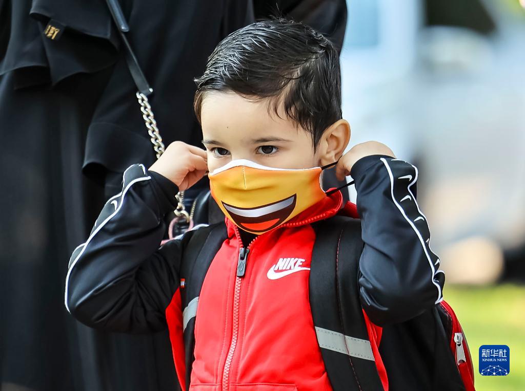 8月30日,在美國芝加哥,一名學(xué)生佩戴口罩在開(kāi)學(xué)日返校。