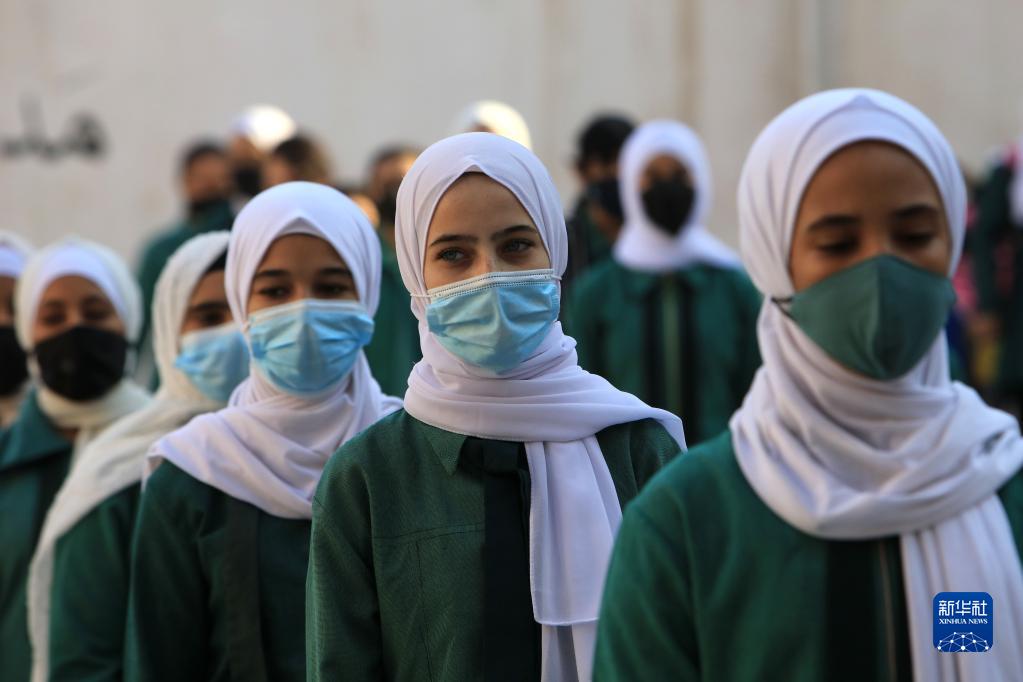 9月1日新學(xué)年第一天,約旦安曼一所學(xué)校的學(xué)生們戴著(zhù)口罩返校集合。