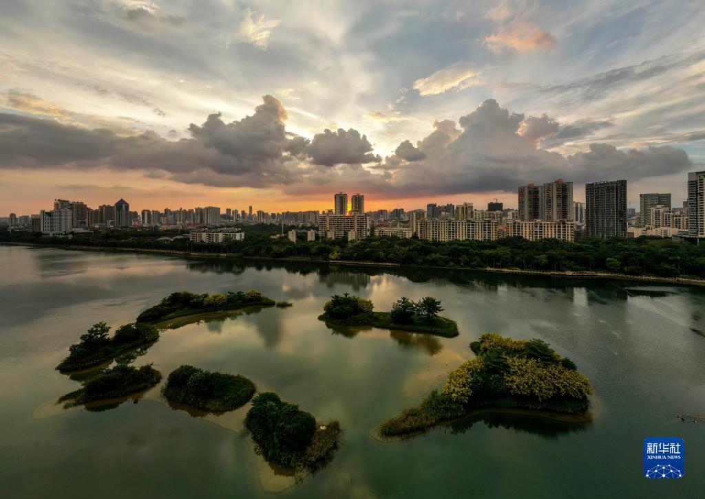 9月5日,陣雨過(guò)后,美麗晚霞映照南寧上空(無(wú)人機照片)。