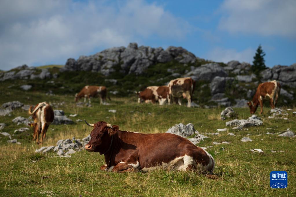 這是9月8日在斯洛文尼亞拍攝的維利卡普拉尼那高地牧場(chǎng)景色。