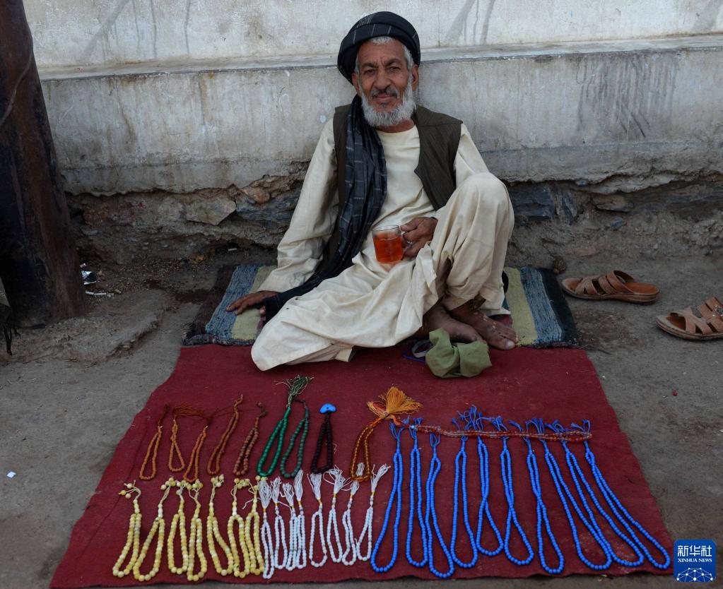 9月14日,一名商販在阿富汗坎大哈街頭等待顧客。