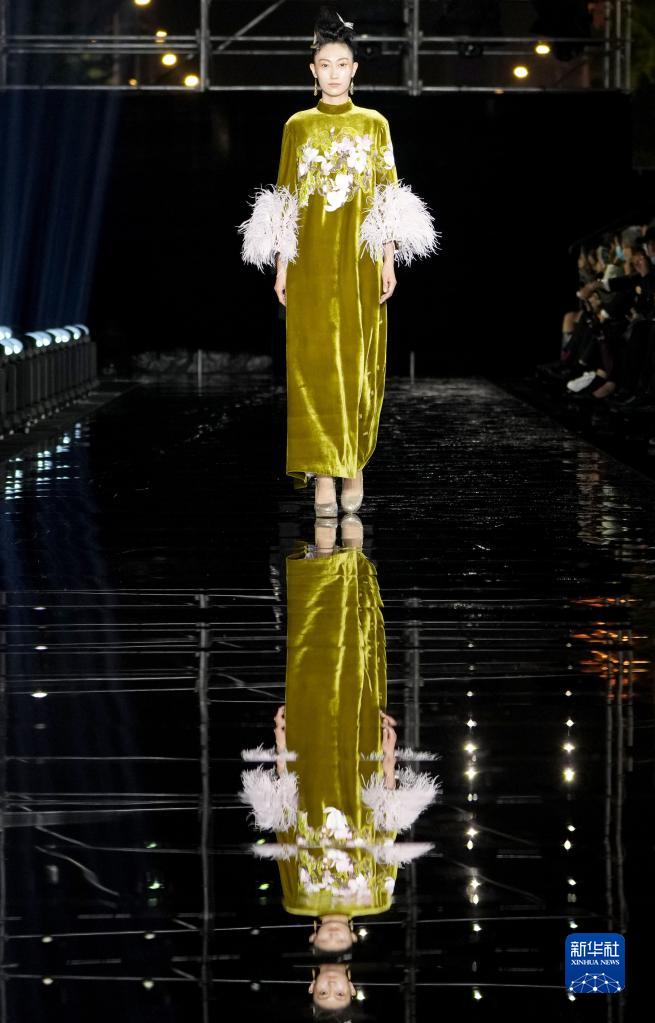 9月26日,模特在北京時(shí)裝周閉幕大秀上展示勞倫斯·許設計的時(shí)裝。