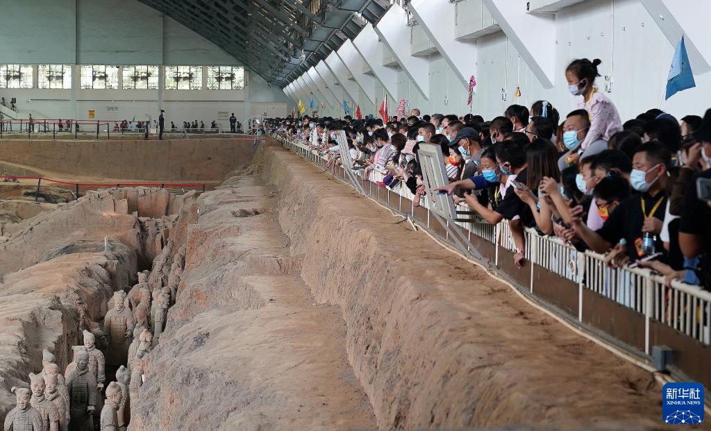 10月2日,游客在陜西西安秦始皇兵馬俑博物館參觀(guān)。