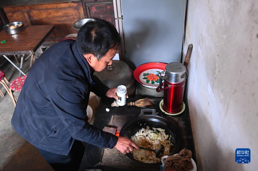 10月12日,在山西省汾西縣本家莊自然村,胡志榮在做中午飯。新華社記者 柴婷 攝