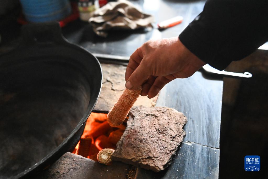 10月12日,在山西省汾西縣本家莊自然村,胡志榮在做中午飯。新華社記者 柴婷 攝