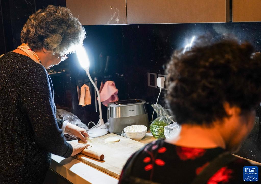 10月11日上午,李戰平(左)在北京的家中包餃子。