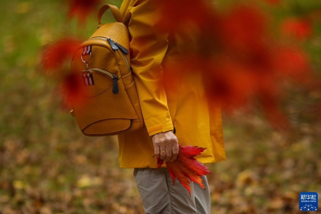 10月27日,游客在英國格洛斯特郡的韋斯頓伯特植物園欣賞秋景。