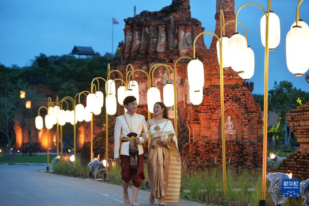 11月8日,游客在泰國北欖府舉行的國際燈籠美食節預展活動(dòng)上游覽。