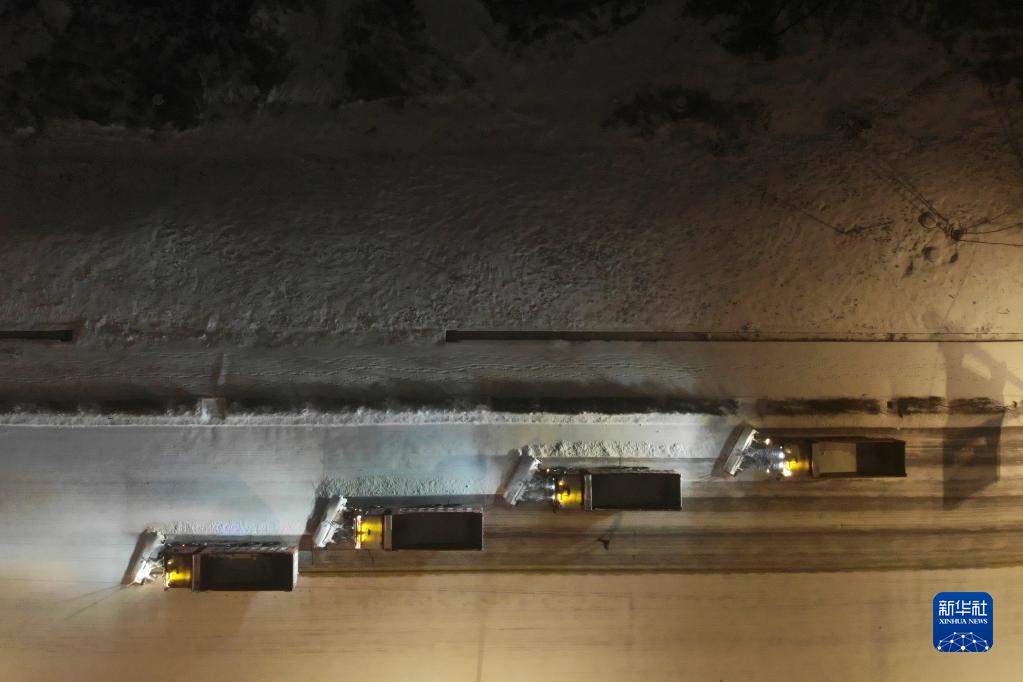 11月21日晚,環(huán)衛清雪車(chē)在雞西市雞冠區雞東新路上進(jìn)行清雪作業(yè)(無(wú)人機照片)。