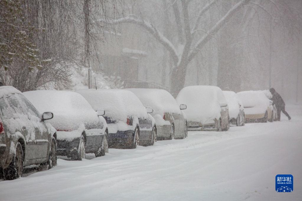 這是12月1日在拉脫維亞里加拍攝的被雪覆蓋的汽車(chē)。