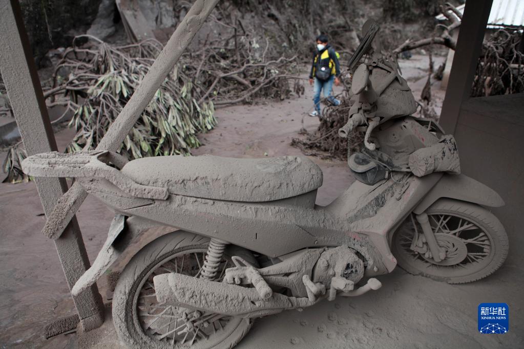 這是12月5日在印度尼西亞爪哇島東部盧馬姜拍攝的被火山噴發(fā)物覆蓋的摩托車(chē)。