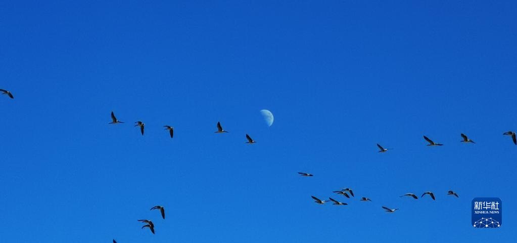 一群候鳥(niǎo)飛過(guò)唐嘎濕地(12月11日攝,手機照片)。