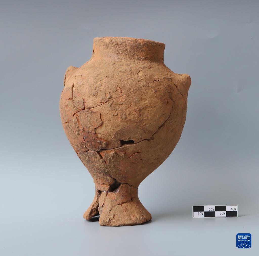 這是在位于河南省新鄭市的裴李崗遺址出土的陶壺(資料照片)。