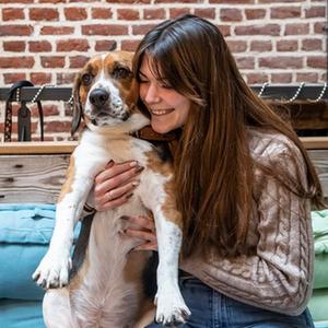 12月22日,在法國北部城市里爾名為Waf Cafe的咖啡館,顧客與狗狗互動(dòng)。