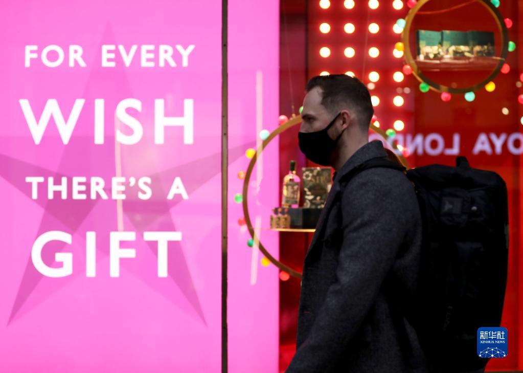 12月23日,一名男子走過(guò)英國倫敦牛津街的一家商店。