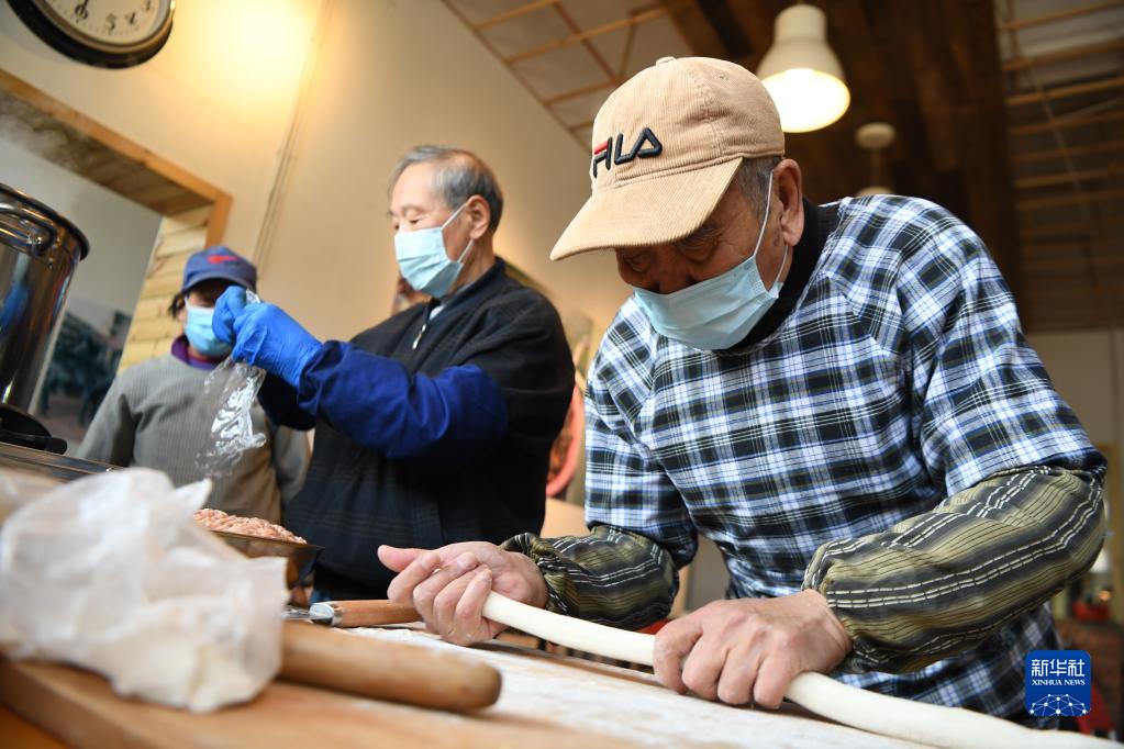 12月22日,馬利民(右)、余國基(中)和李厚君在寶南飯店制作手工水餃和蛋餃。新華社記者 薛宇舸 攝