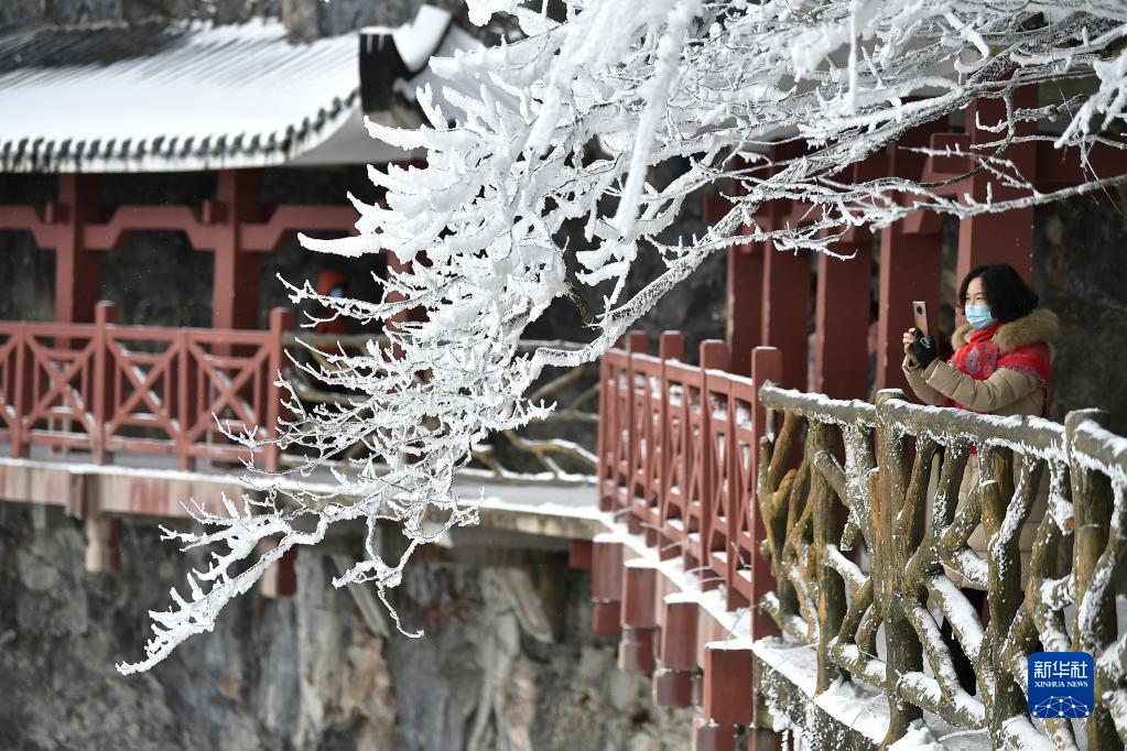 12月27日,游客在湖南省張家界天門(mén)山景區拍攝雪后美景。
