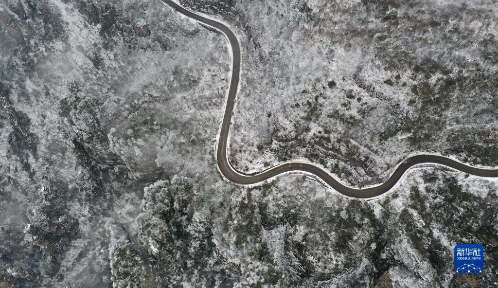 12月28日在湖南省張家界武陵源景區拍攝的雪景(無(wú)人機照片)。