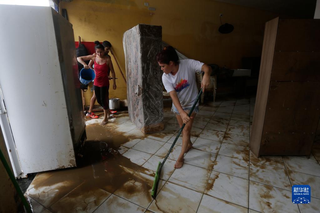 12月28日,人們在巴西巴伊亞州達里烏梅拉市打掃被洪水侵襲的房屋。
