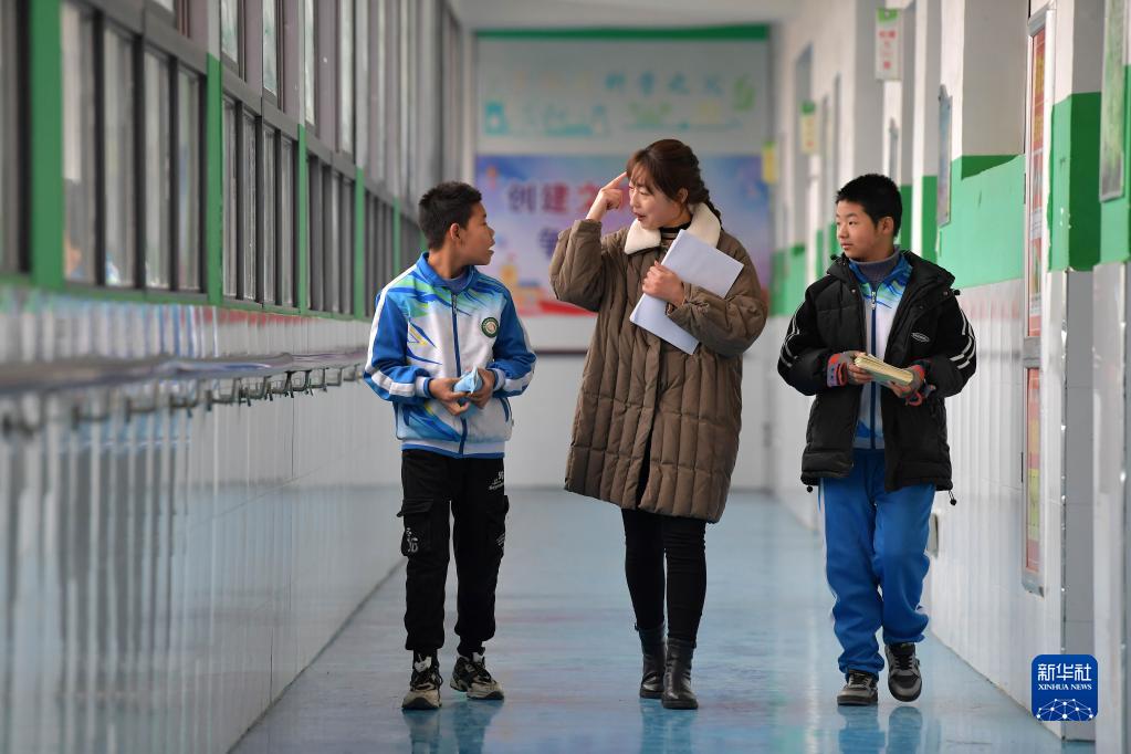 在江西省宜春市特殊教育學(xué)校,樊海艷和學(xué)生們準備去教室上課(12月28日攝)。
