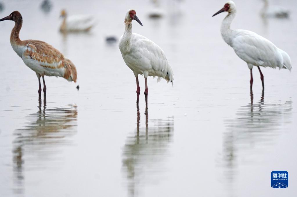 白鶴在濕地棲息(1月1日攝)。新華社記者 萬(wàn)象 攝