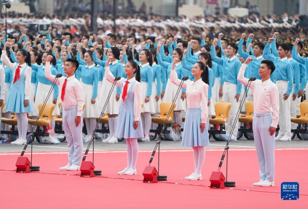 2021年7月1日上午,慶祝中國共產(chǎn)黨成立100周年大會(huì )在北京天安門(mén)廣場(chǎng)隆重舉行。這是共青團員和少先隊員代表集體致獻詞。