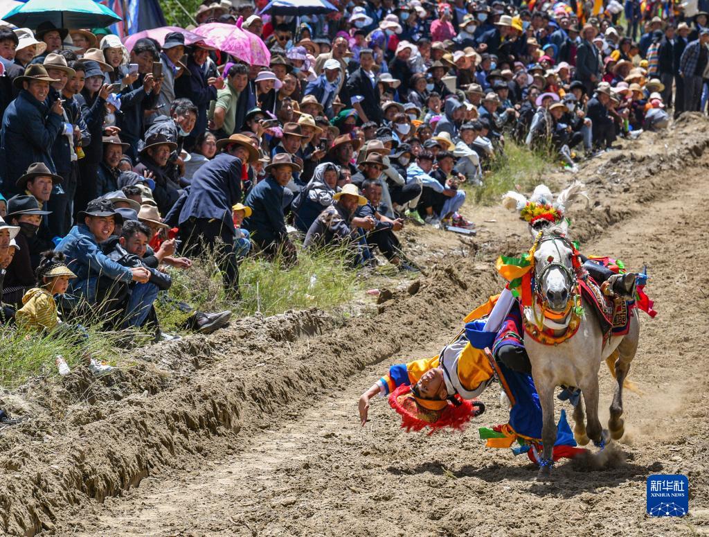 2021年8月26日,位于雅魯藏布江畔山谷里的西藏山南市貢嘎縣昌果鄉崗旦村舉行一年一度的賽馬,迎接即將到來(lái)的收獲季節。