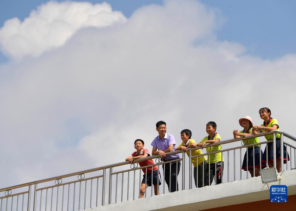 2021年8月31日,在江西于都縣仙下鄉龍溪小學(xué)任教的朱森林和學(xué)生們聊天。2005年,朱森林從龍溪小學(xué)畢業(yè);2014年,他回到母校,投身鄉村教育事業(yè)。