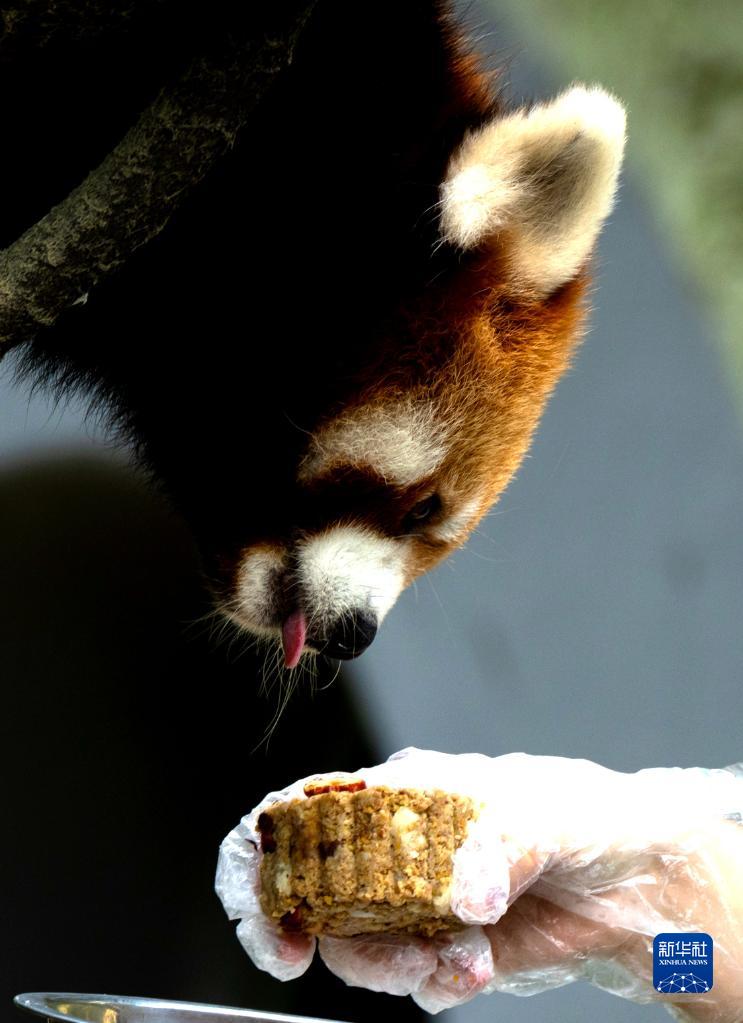 2021年9月20日,在中秋節來(lái)臨之際,上海動(dòng)物園一只小熊貓準備吃“月餅”。