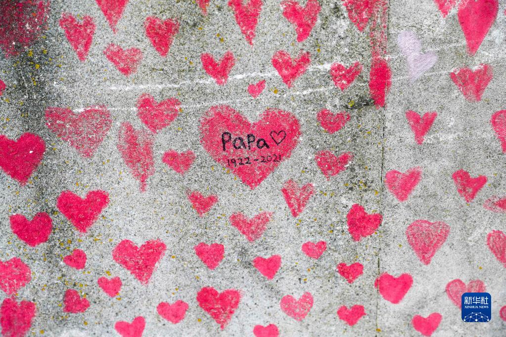 這是2021年8月9日拍攝的英國倫敦國家新冠紀念墻上的紅心和留言。為了紀念在新冠疫情中去世的人們,英國在倫敦議會(huì )大廈對面的泰晤士河沿岸設立了國家新冠紀念墻。逝者的親友和志愿者在幾百米長(cháng)的紀念墻上畫(huà)上紅色的心,每一顆心代表一名因新冠去世的英國人,表達對逝者的哀思。