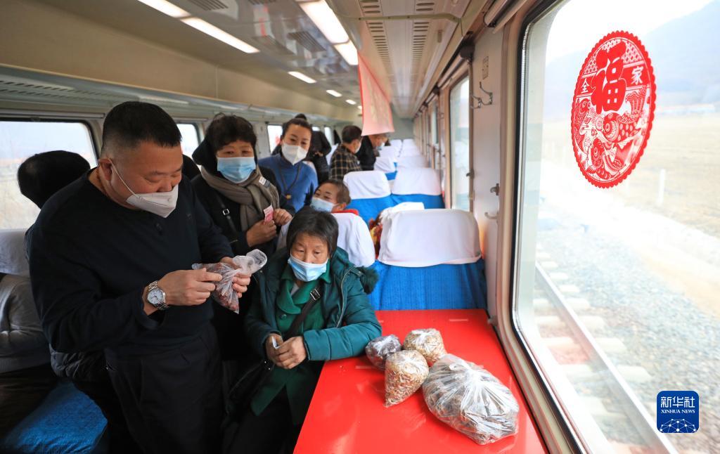 吉林通化至遼寧丹東的4318/7次列車(chē)是一輛行駛在東北東部山區的慢火車(chē)。為助力鄉村振興,中國鐵路沈陽(yáng)局集團有限公司吉林客運段在列車(chē)上開(kāi)辦“年貨大集”。沿線(xiàn)各村鎮的農民不用等到進(jìn)城,就可在車(chē)廂里售賣(mài)自家山貨。