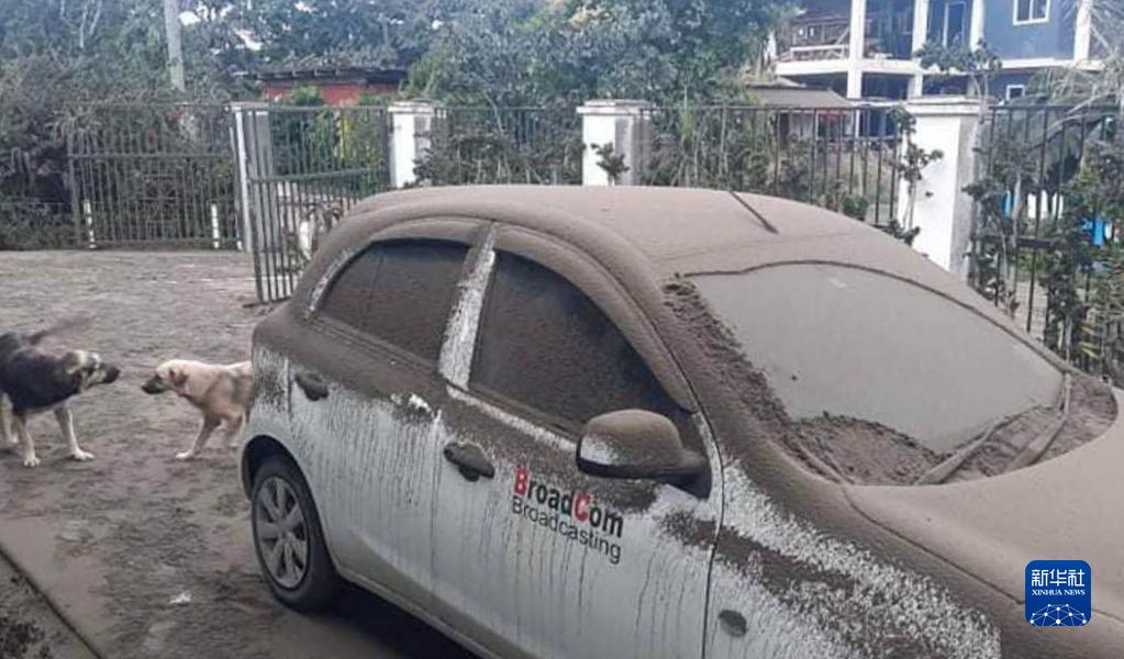 這是近日在湯加首都努庫阿洛法拍攝的被火山灰覆蓋的汽車(chē)。