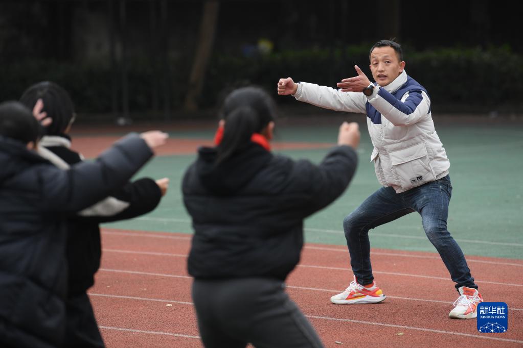 1月21日,在前童鎮中心小學(xué),童攀峰帶領(lǐng)學(xué)生們開(kāi)展舞獅基本動(dòng)作訓練。
