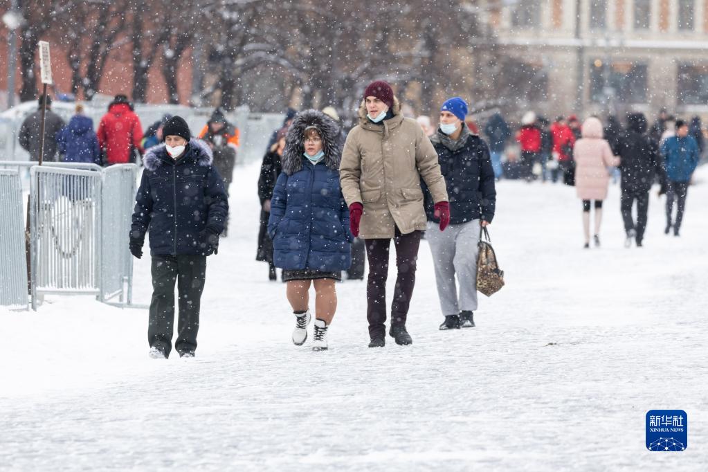 1月26日,人們走在俄羅斯莫斯科紅場(chǎng)上。