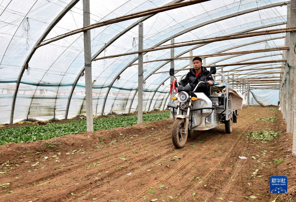 1月31日,在河北省邢臺市南和區賈宋鎮郄村,宋建飛把采收的菠菜裝車(chē)外運。