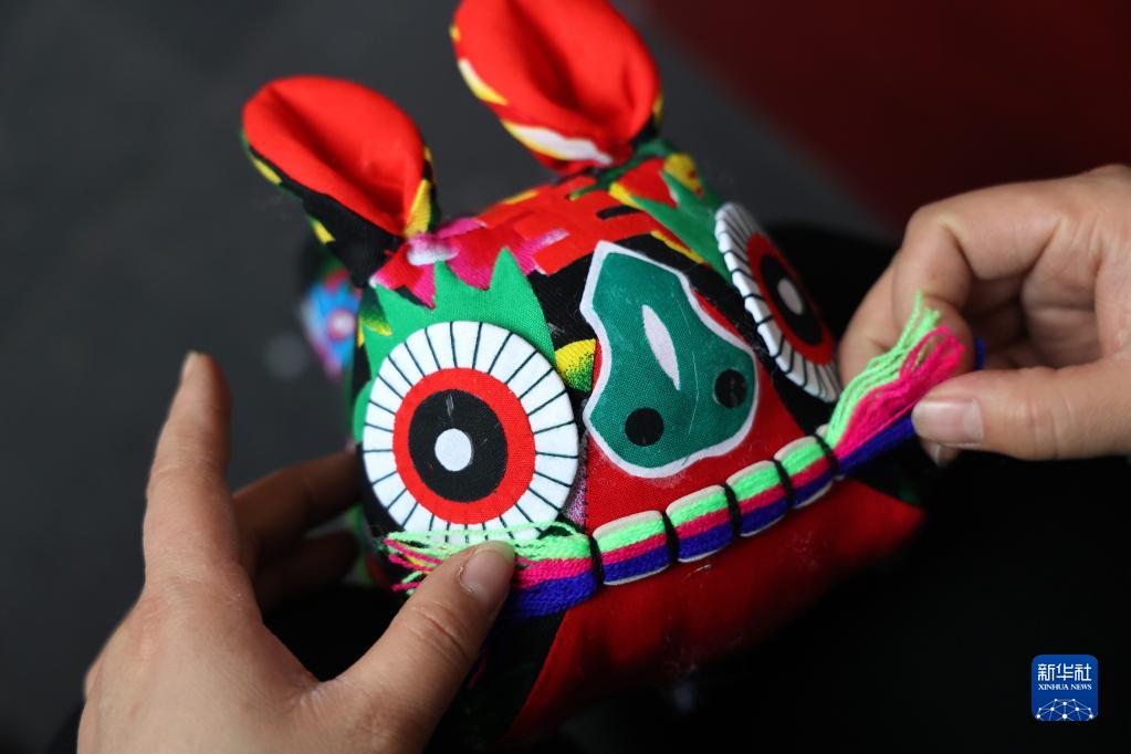 1月16日,在山東省濱州市濱城區彭李街道一家布老虎生產(chǎn)企業(yè),手工藝人在制作布老虎。