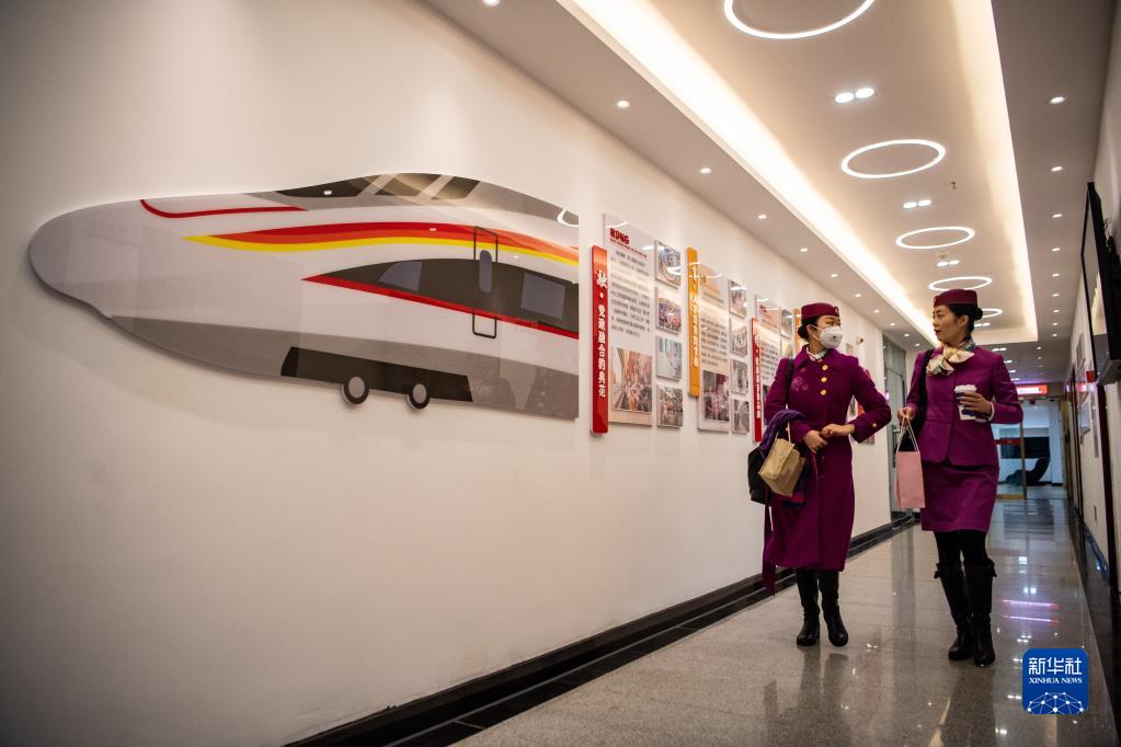 2月2日,在重慶北站綜合樓,林夢(mèng)凡(左)和同事一同出乘。